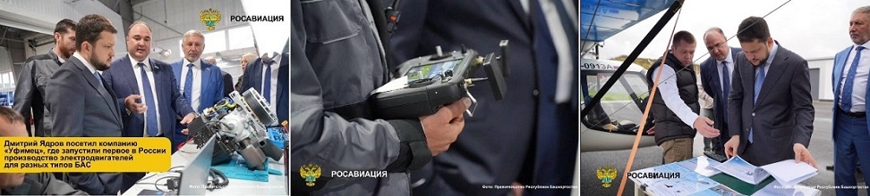 В рамках рабочего визита в Башкортостан руководитель Росавиации Дмитрий Ядров посетил компанию «Уфимец», где ознакомился с производством электродвигателей, генераторов и с возможностями беспилотной авиационной системы «Уфимец-150».