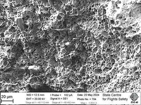 Ямочный рельеф излома вывода № 5, сформированный на втором участке